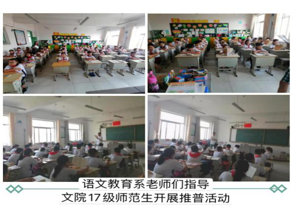 围绕本届推普周主题,在张晓明老师、钱伟老师、焦绪霞老师、张轶西老师和卞尊昌老师的指导下,文学院共举办了“知识促脱贫,支教传温情”、“线上推广普通话,助力扶贫奔小康”、“经典研读,学无止境”、“齐讲普通话,开展公开课”、“妙笔书写国学,诗意情系墨缘”、“笔墨生香闻天下事,青春躬行助家国兴”等六大主题活动。从线下支教宣传到线上推广普通话,从“普通话训练与测试”公开课到“三下乡”支农帮扶交流会,从名篇诵读到书法比赛,活动内容丰富、形式多样、特色鲜明,为学生营造了浓厚的语言环境和良好的规范用字氛围。